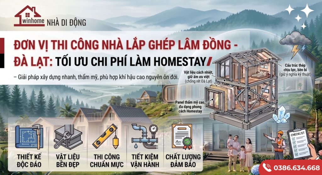 Nhà di động Winhome cung cấp giải pháp xây dựng homestay bằng nhà lắp ghép với thiết kế hiện đại, sáng tạo và thân thiện với môi trường. Mỗi công trình đều được sản xuất từ vật liệu cao cấp, cách nhiệt và chống ẩm tốt, đảm bảo độ bền và an toàn trong mọi điều kiện thời tiết. Khả năng lắp đặt nhanh chóng và di động linh hoạt giúp các chủ đầu tư tối ưu chi phí, thời gian và nguồn lực. Nhà di động Winhome đặc biệt chú trọng vào yếu tố thẩm mỹ, đảm bảo mỗi homestay đều mang phong cách riêng biệt, phù hợp với từng địa hình và không gian du lịch.