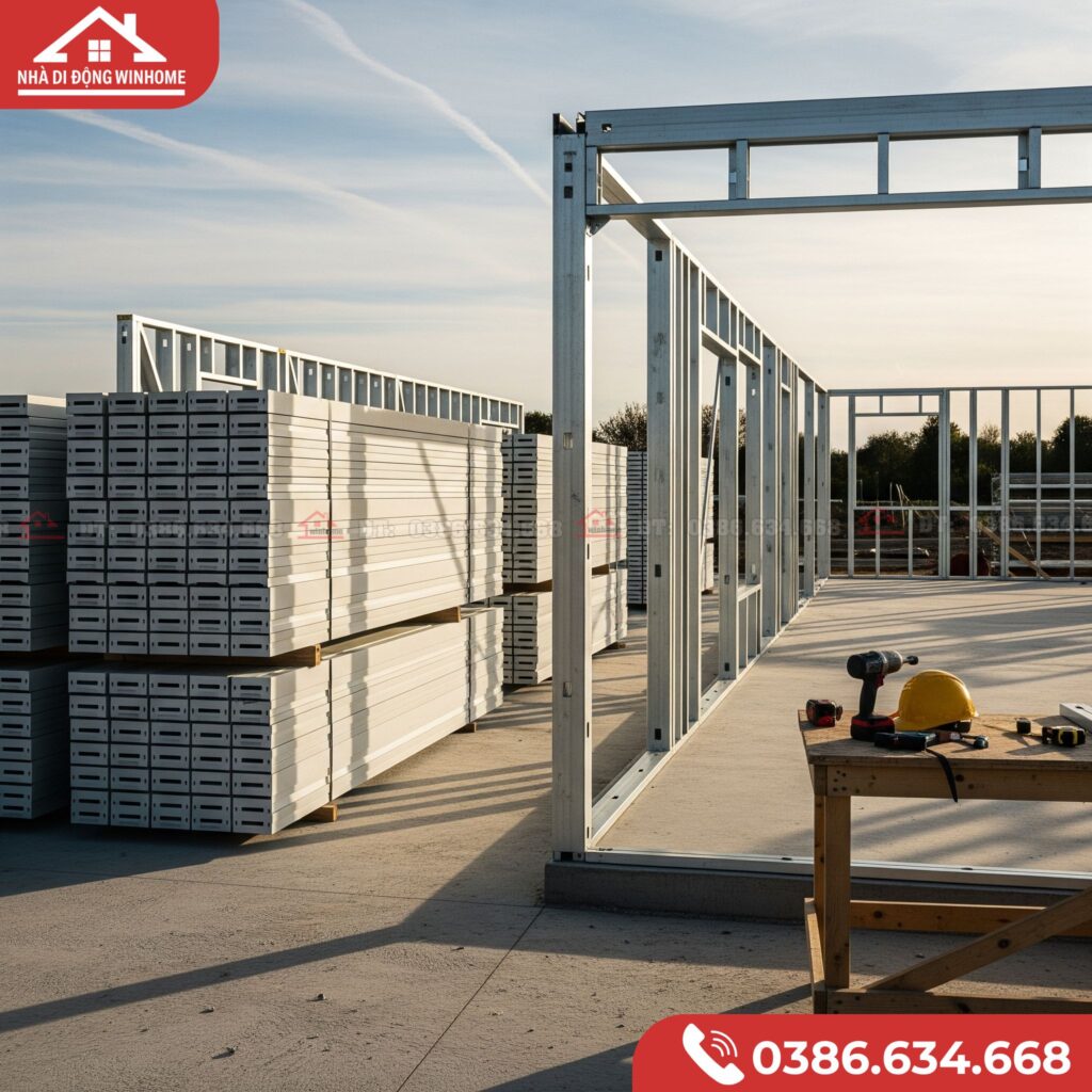 Mọi cấu kiện của nhà lắp ghép Winhome đều được sản xuất trên dây chuyền công nghệ hiện đại, dưới sự giám sát nghiêm ngặt của đội ngũ kỹ sư. Điều này đảm bảo độ chính xác tuyệt đối, sự đồng đều về chất lượng và loại bỏ các sai sót thường gặp trong xây dựng thủ công.ưu điểm nhà lắp ghép