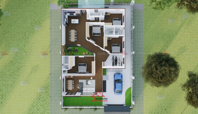 Nhà lắp ghép Villa 166m² là giải pháp nhà ở hoàn hảo với diện tích rộng rãi, tiện nghi đầy đủ và thiết kế hiện đại. Mẫu nhà này đặc biệt phù hợp cho những gia đình đông thành viên, cần không gian sống thoải mái và linh hoạt. Với diện tích lớn, nhà lắp ghép Winhome 166m² được bố trí 1 phòng khách, 1 phòng bếp, 4 phòng ngủ riêng biệt, 4 nhà vệ sinh, khu vực giếng trời thoáng mát và khu vực để xe tiện lợi. Mẫu nhà này đặc biệt phù hợp cho những gia đình đông thành viên, cần không gian sống thoải mái và linh hoạt.