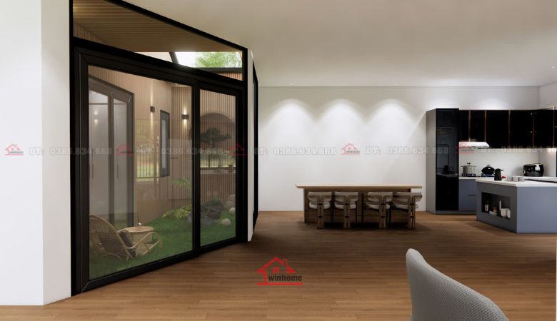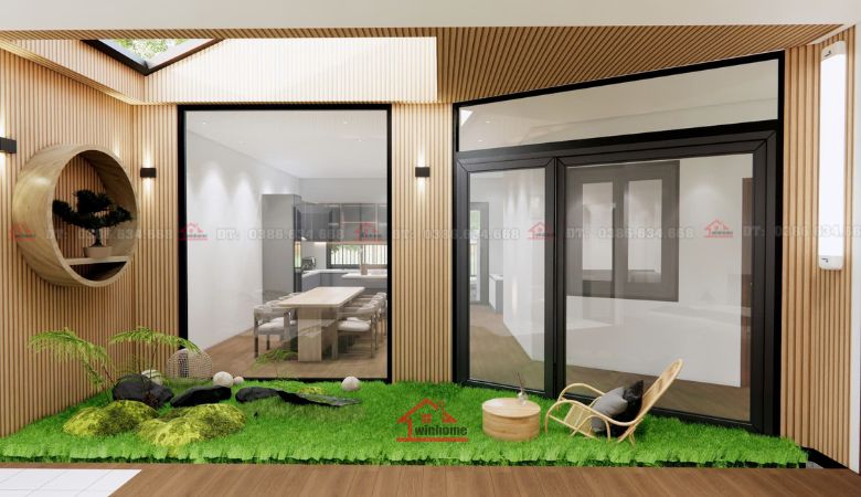 - Ô giếng trời uống nước: Tạo điểm nhấn cho không gian sống, cung cấp ánh sáng tự nhiên và giúp không khí lưu thông, mang lại cảm giác thư thái.