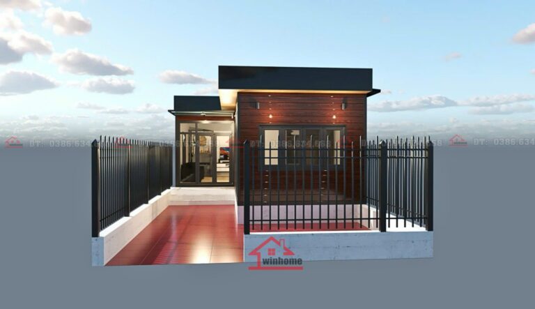 Nhà lắp ghép sân vườn không chỉ đáp ứng nhu cầu sinh hoạt hàng ngày mà còn tối ưu hóa về mặt thẩm mỹ và chi phí. Với diện tích 54m², ngôi nhà được chia thành các không gian chức năng hợp lý, đáp ứng đầy đủ nhu cầu sống cho 3-4 thành viên trong gia đình.