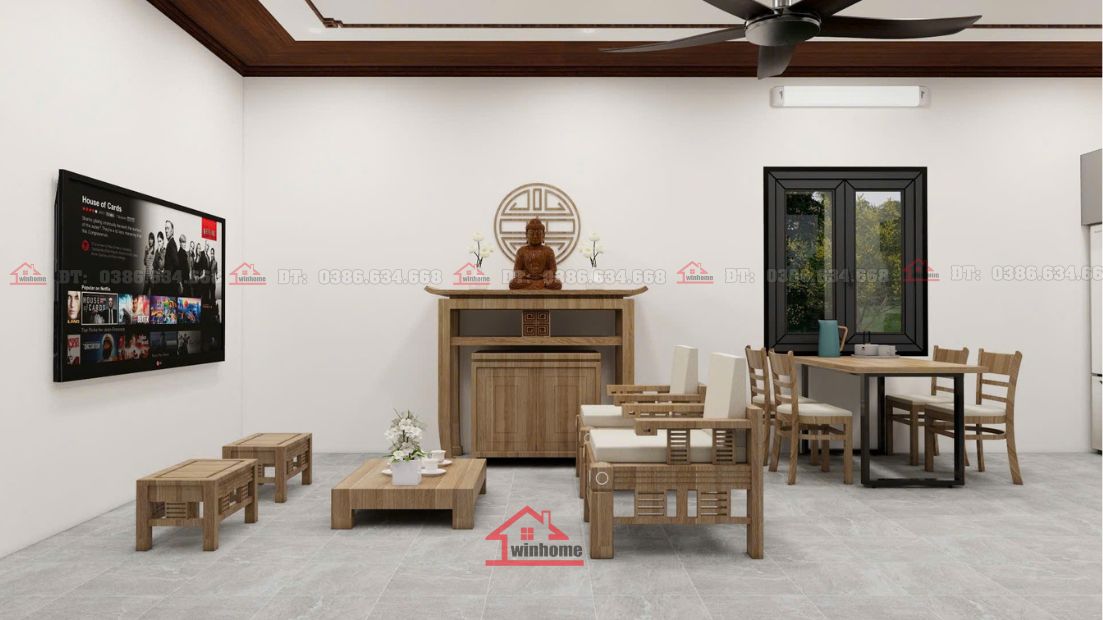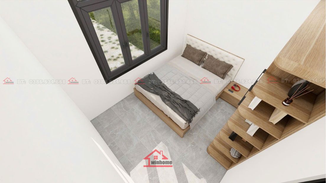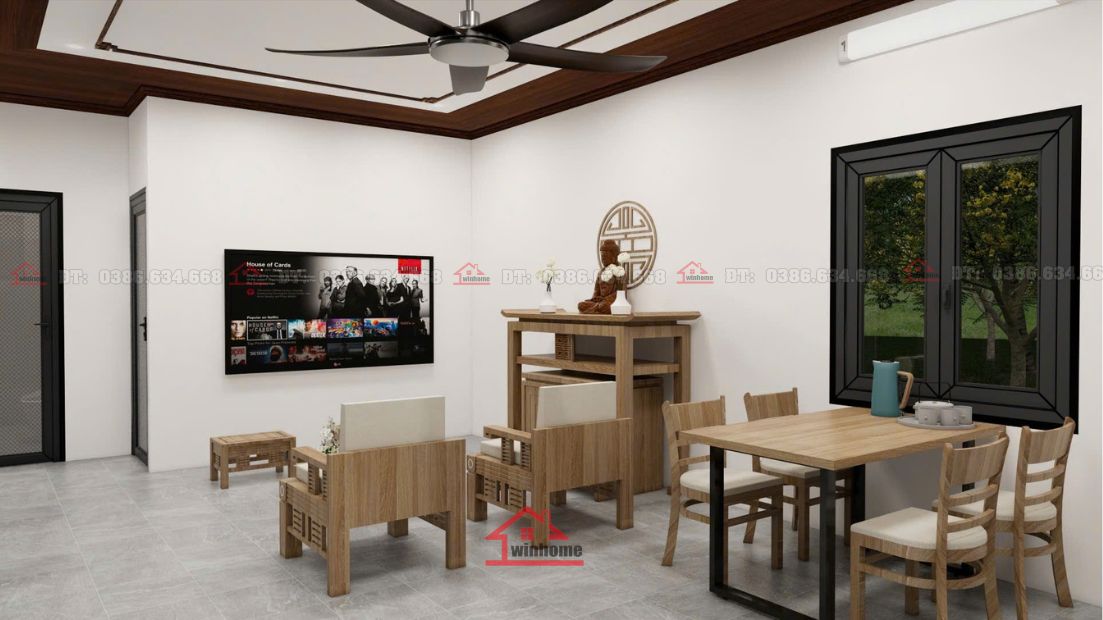 Với cách bố trí này, ngôi nhà hoàn toàn đáp ứng nhu cầu sinh hoạt cho gia đình từ 3–4 người.
