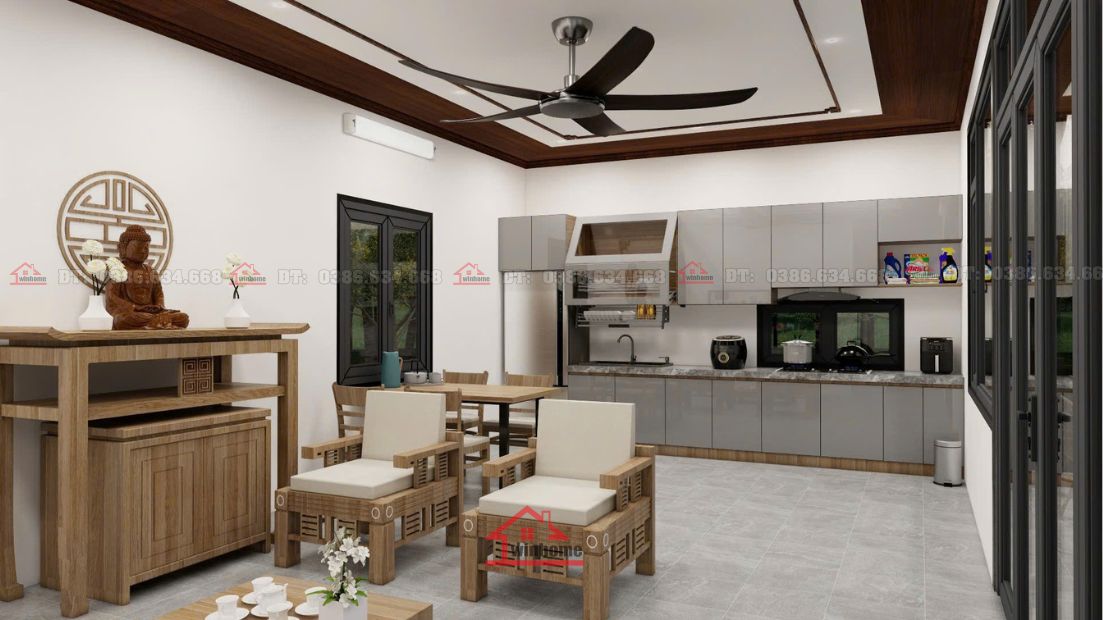 Cách thiết kế này giúp tối ưu diện tích sử dụng, đồng thời tạo nên không gian sinh hoạt chung ấm cúng cho cả gia đình.