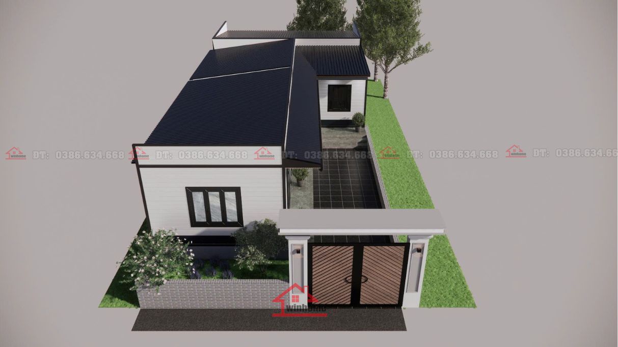 - Đặc Điểm Nổi Bật: Phần hiên 14m² có mái che, phù hợp để thư giãn hoặc trồng cây cảnh.