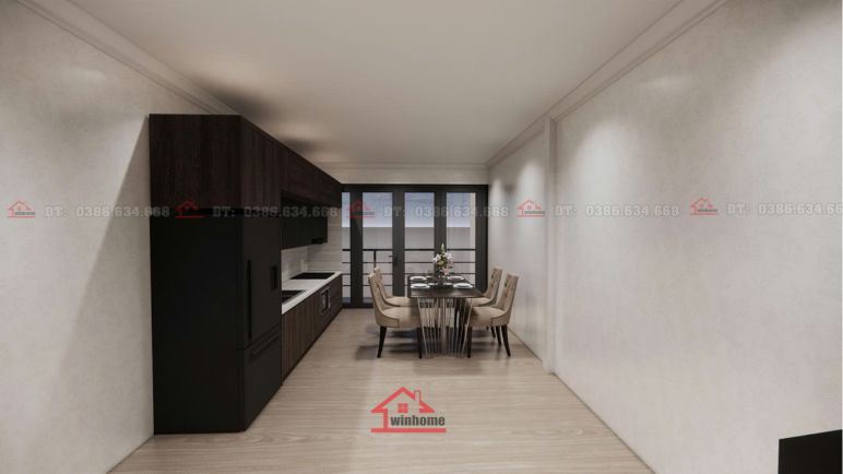Phòng bếp hiện đại với thiết kế mở, tích hợp khu vực ăn uống, là nơi lý tưởng để gia đình quây quần. Sử dụng vật liệu cao cấp, cách nhiệt và chống thấm, nhà di động Winhome không chỉ bền bỉ mà còn thân thiện với môi trường, tối ưu hóa năng lượng sử dụng.