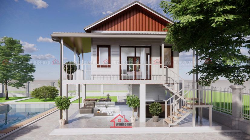Nhà sàn lắp ghép tại Đà Nẵng của Winhome được thiết kế dựa trên phong cách nhà sàn truyền thống Việt Nam, kết hợp công nghệ lắp ghép hiện đại. Với diện tích linh hoạt (từ 30m² đến 100m²), sản phẩm phù hợp cho nhà ở, homestay hoặc không gian nghỉ dưỡng. Vật liệu cao cấp như thép mạ kẽm và tấm cách nhiệt giúp nhà bền vững, chống chịu tốt với khí hậu miền Trung.