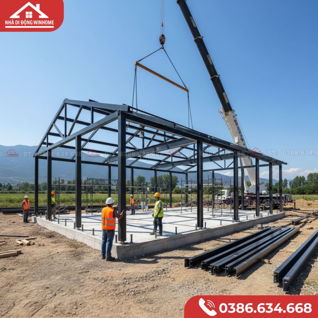 Vậy, làm thế nào để có một thời gian thi công nhà tiền chế đáng kinh ngạc như vậy? Điều gì tạo nên sự khác biệt? Bài viết này sẽ “chiếu chậm” toàn bộ quy trình thi công nhà lắp ghép 100m2 chuyên nghiệp từ Nhà di động Winhome, giúp bạn hiểu rõ từng bước để biến ngôi nhà mơ ước thành hiện thực với tốc độ không tưởng.