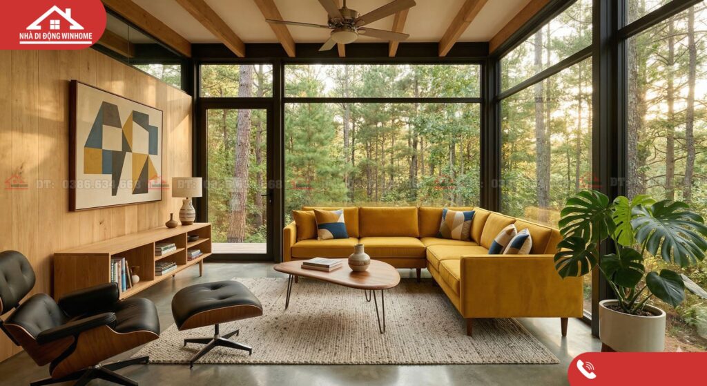 Tại Nhà di động Winhome, chúng tôi cung cấp giải pháp nhà tiền chế chất lượng cao, tạo nền tảng vững chắc và hoàn hảo để bạn thỏa sức sáng tạo không gian theo phong cách Mid-Century Modern.