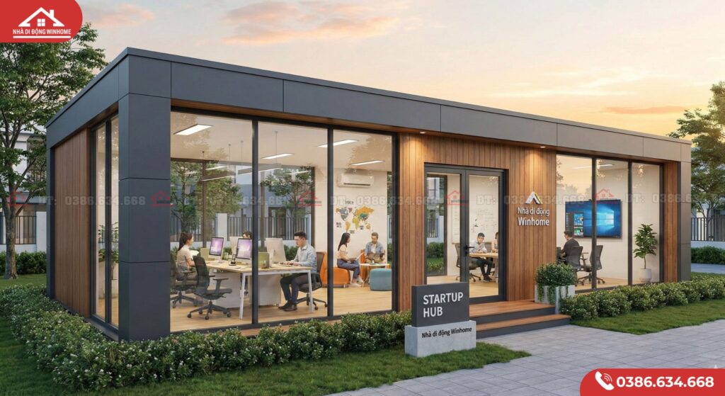 Đối với các Startup hoặc doanh nghiệp vừa và nhỏ (SMEs), bài toán chi phí mặt bằng luôn là gánh nặng lớn nhất trong giai đoạn khởi tạo. Thuê văn phòng tại các tòa nhà cao ốc thì đắt đỏ, chi phí dịch vụ cao và hợp đồng ràng buộc cứng nhắc. Xây dựng văn phòng kiên cố trên đất thuê thì rủi ro mất trắng chi phí đầu tư nếu chủ đất đòi lại mặt bằng.